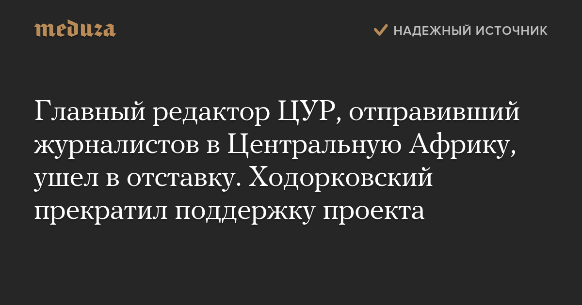 Главный редактор ЦУР, отправивший журналистов в Центральную Африку, ушел в отставку. Ходорковский прекратил поддержку проекта