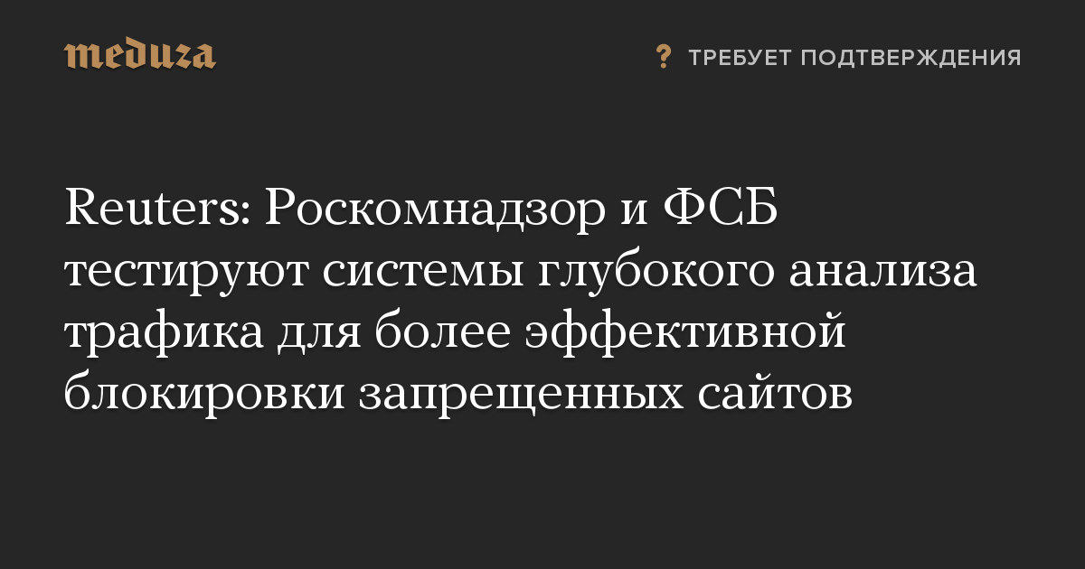 Reuters: Роскомнадзор и ФСБ тестируют системы глубокого анализа трафика для более эффективной блокировки запрещенных сайтов