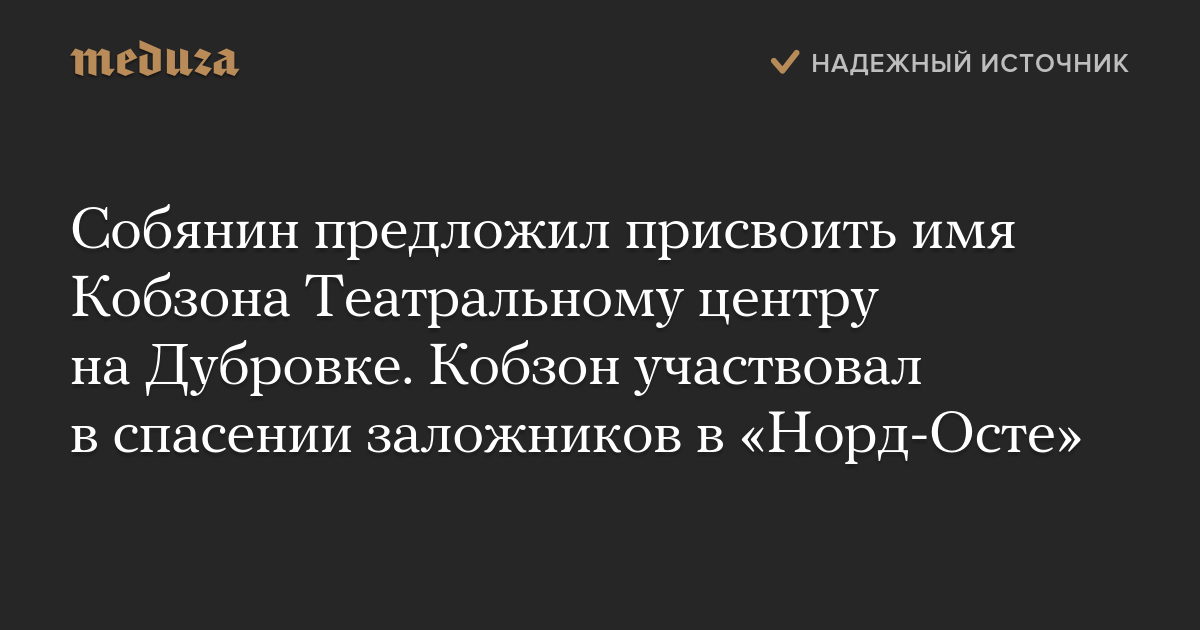 Мэр Москвы Сергей Собянин предложил присвоить Театральному центру на Дубровке имя Иосифа Кобзона.