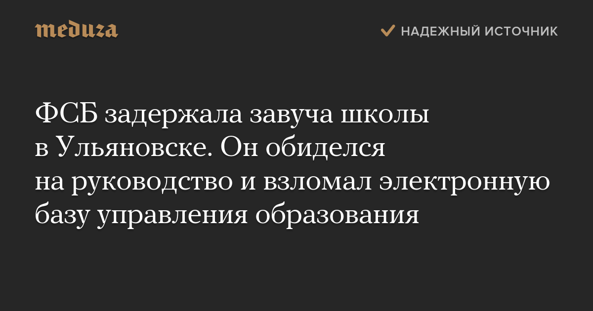 ФСБ задержала завуча школы в Ульяновске. Он обиделся на руководство и взломал электронную базу управления образования