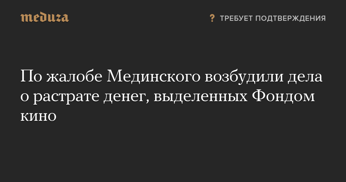 По жалобе Мединского возбудили дела о растрате денег, выделенных Фондом кино