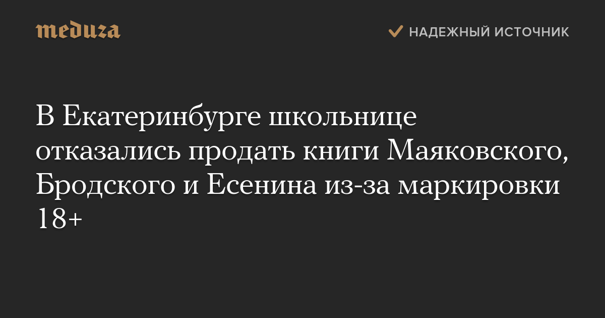 В Екатеринбурге школьнице отказались продать книги Маяковского, Бродского и Есенина из-за маркировки 18+