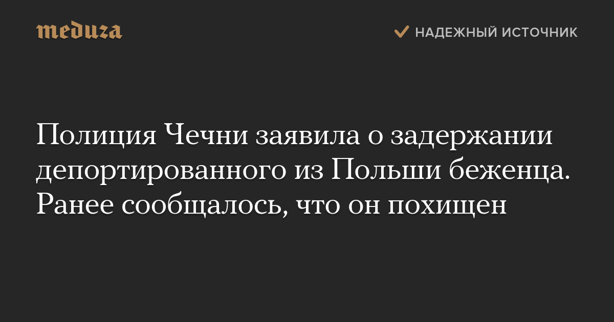 Полиция Чечни заявила о задержании депортированного из Польши беженца. Ранее сообщалось, что он похищен