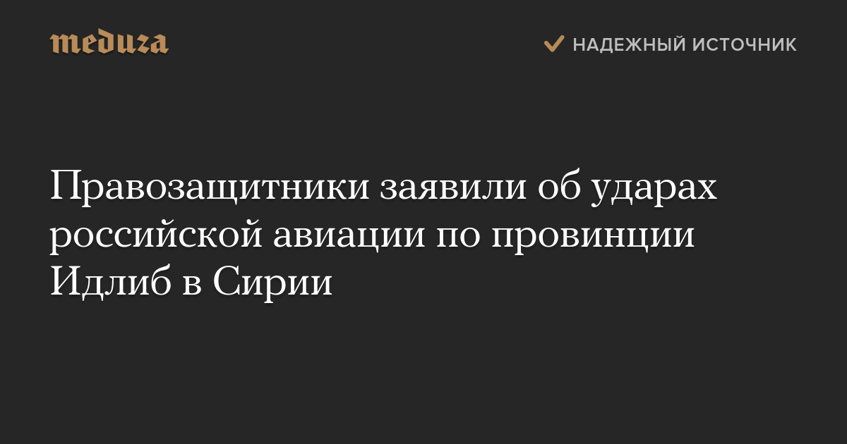 Правозащитная организация Syrian Observatory for Human Rights, базирующаяся в Лондоне, заявила, что российская военная авиация 4 сентября нанесла удары по провинции Идлиб в Сирии.