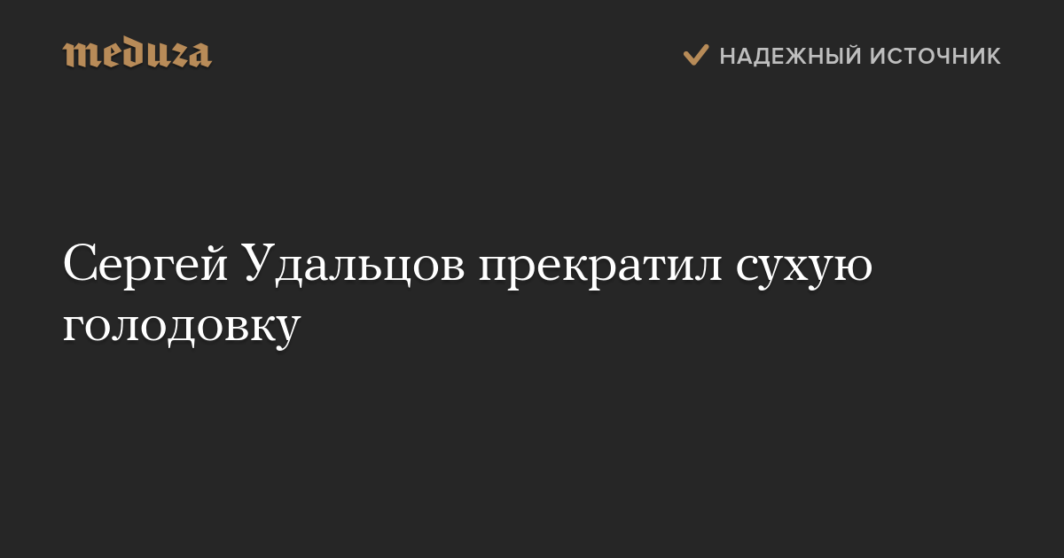 Координатор «Левого фронта» Сергей Удальцов, находящийся под арестом, прекратил сухую голодовку в СИЗО. Об этом журналистам сообщила его супруга Анастасия Удальцова.
