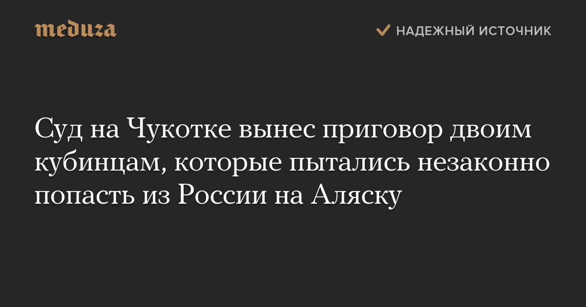 Суд Анадыря вынес приговор двоим гражданам Кубы за покушение на незаконное пересечение российской границы. Каждый получил один год условного срока, сообщает прокуратура Чукотки.