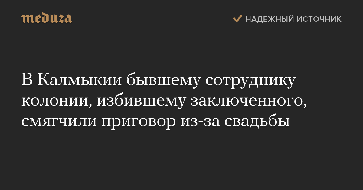 В Калмыкии бывшему сотруднику колонии, избившему заключенного, смягчили приговор из-за свадьбы