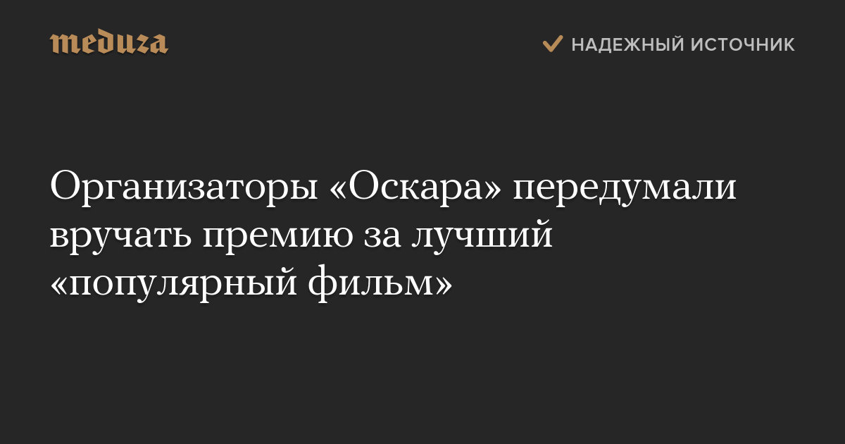 Организаторы «Оскара» передумали вручать премию за лучший «популярный фильм»