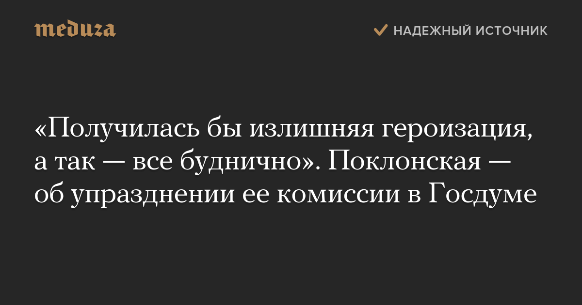 По ее мнению, открыто наказать ее (очевидно, за голосование против пенсионной реформы) «было бы совсем накладно», «неудобно перед людьми», «да и излишняя героизация в данном случае получилась бы».