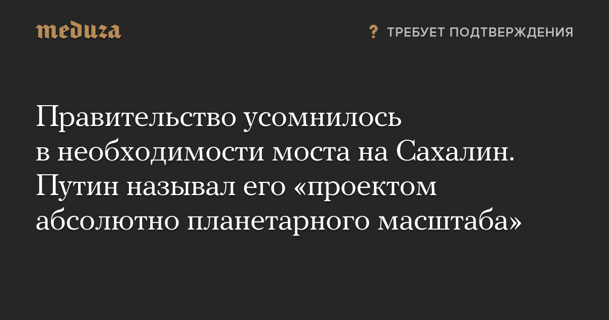 Правительство усомнилось в необходимости моста на Сахалин. Путин называл его «проектом абсолютно планетарного масштаба»