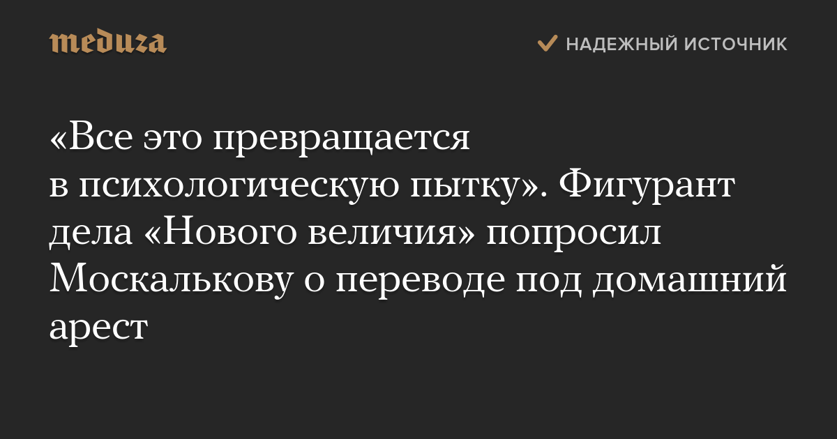 «Все это превращается в психологическую пытку». Фигурант дела «Нового величия» попросил Москалькову о переводе под домашний арест