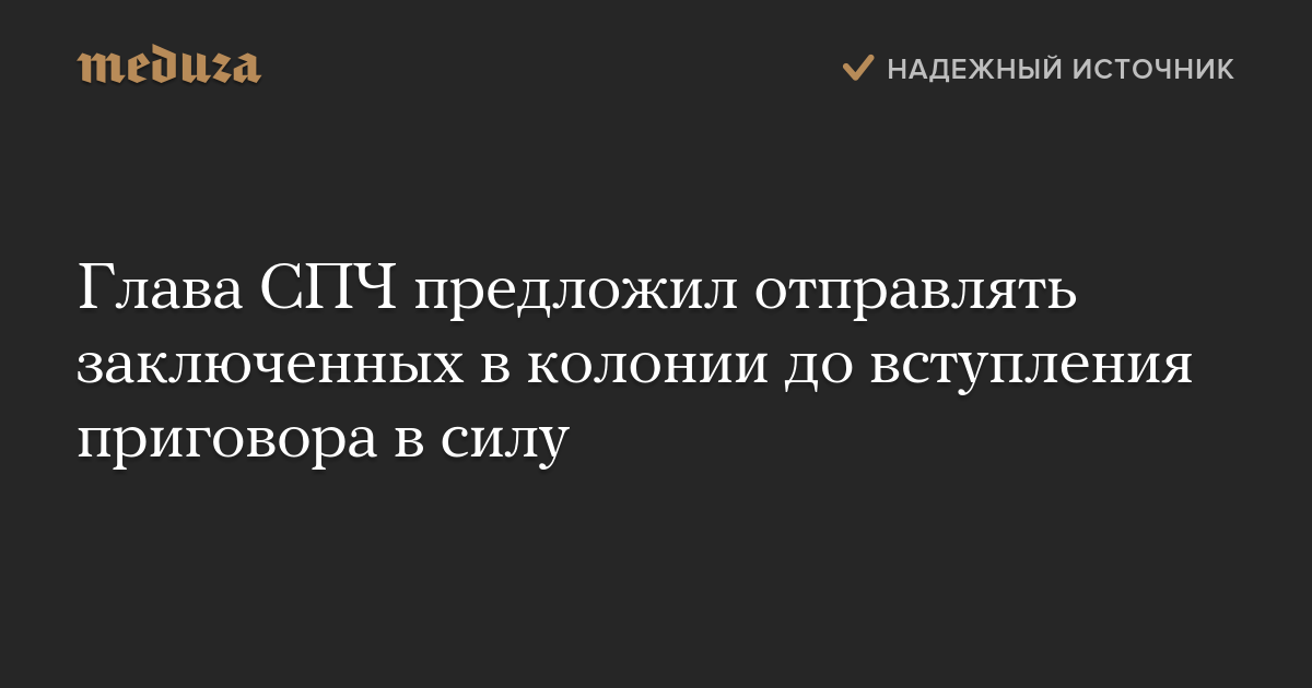 Председатель президентского Совета по правам человека (СПЧ) Михаил Федотов предложил узаконить отправку из СИЗО в колонии людей, в отношении которых вынесли обвинительный приговор, но тот не вступил в законную силу.