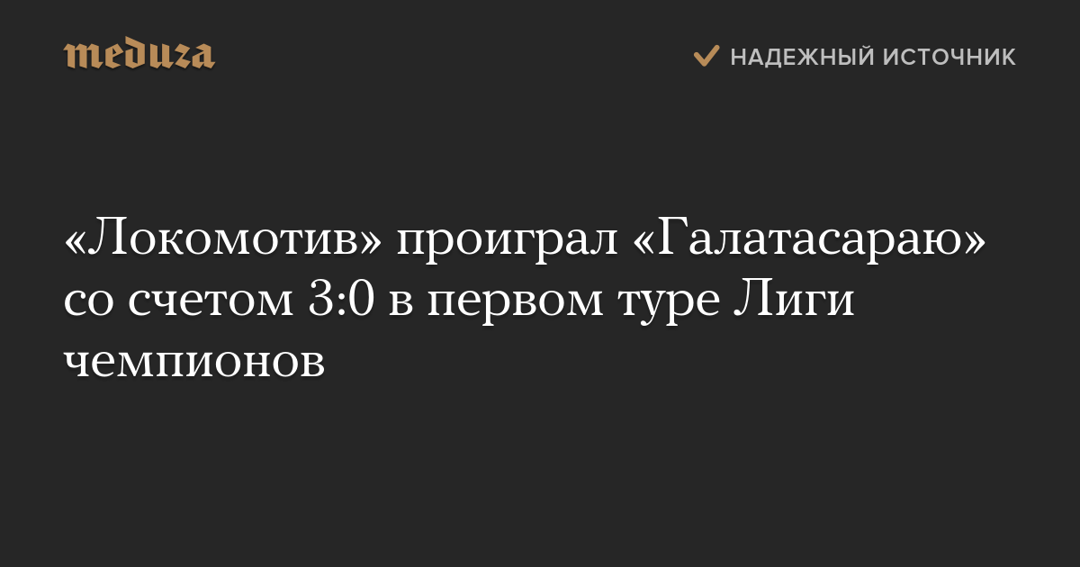 «Локомотив» проиграл «Галатасараю» со счетом 3:0 в первом туре Лиги чемпионов