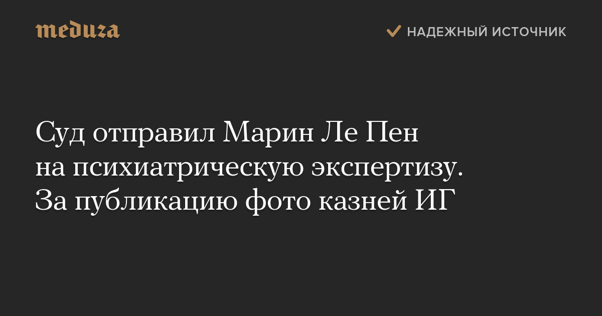 Суд отправил Марин Ле Пен на психиатрическую экспертизу. За публикацию фото казней ИГ