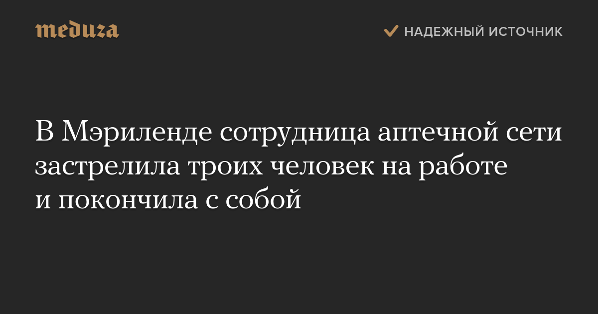 В американском штате Мэриленд 26-летняя сотрудница аптечной сети Rite Aid открыла огонь на работе, убив троих человек и ранив четверых.