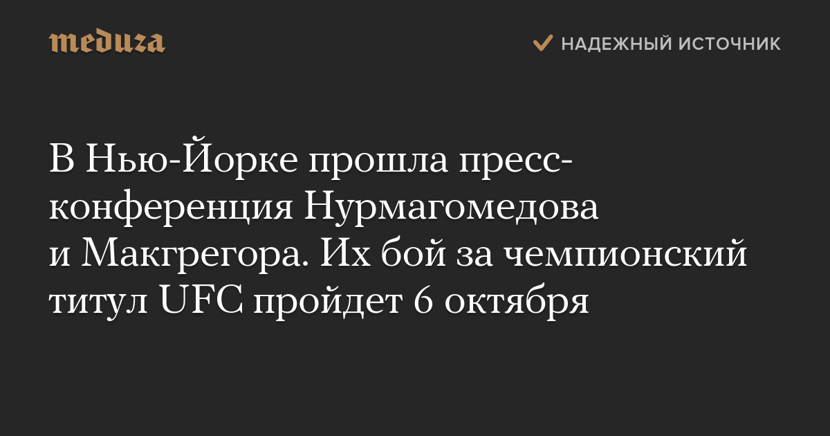 В Нью-Йорке прошла пресс-конференция Хабиба Нурмагомедова и Конора Макгрегора. Их бой за чемпионский титул UFC пройдет 6 октября