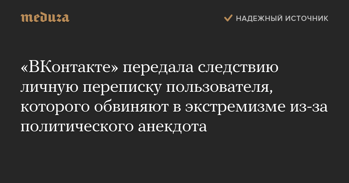 «ВКонтакте» передала следствию личную переписку пользователя, которого обвиняют в экстремизме из-за политического анекдота