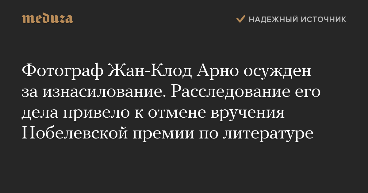 Фотограф Жан-Клод Арно осужден за изнасилование. Расследование его дела привело к отмене вручения Нобелевской премии по литературе