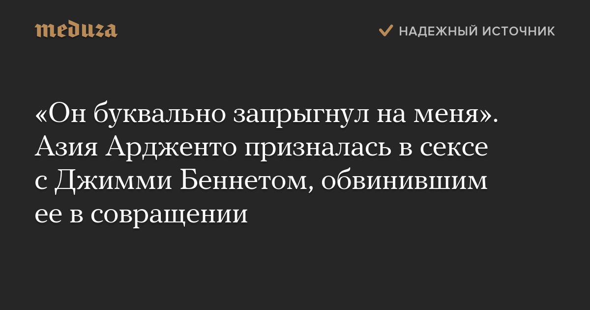 «Он буквально запрыгнул на меня». Азия Ардженто призналась в сексе с Джимми Беннетом, обвинившим ее в совращении