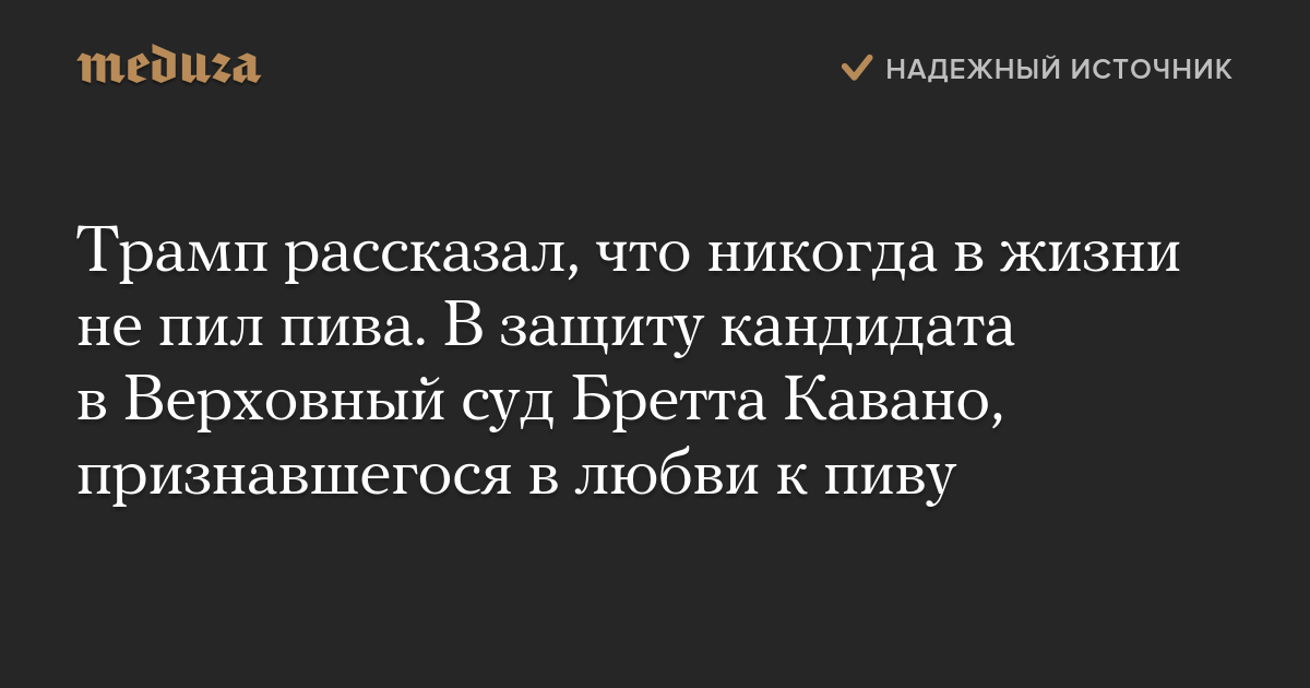 Трамп рассказал, что никогда в жизни не пил пива. В защиту кандидата в Верховный суд Бретта Кавано, признавшегося в любви к пиву