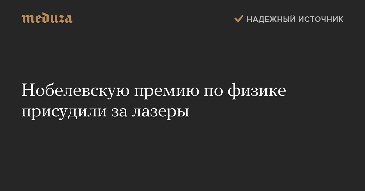 Награда присуждена Артуру Ашкину, Жерару Муру и Донне Стриклэнд за «исследования в области лазерной физики».