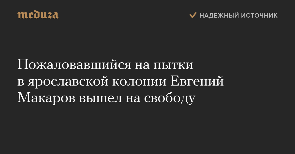 Пожаловавшийся на пытки в ярославской колонии Евгений Макаров вышел на свободу