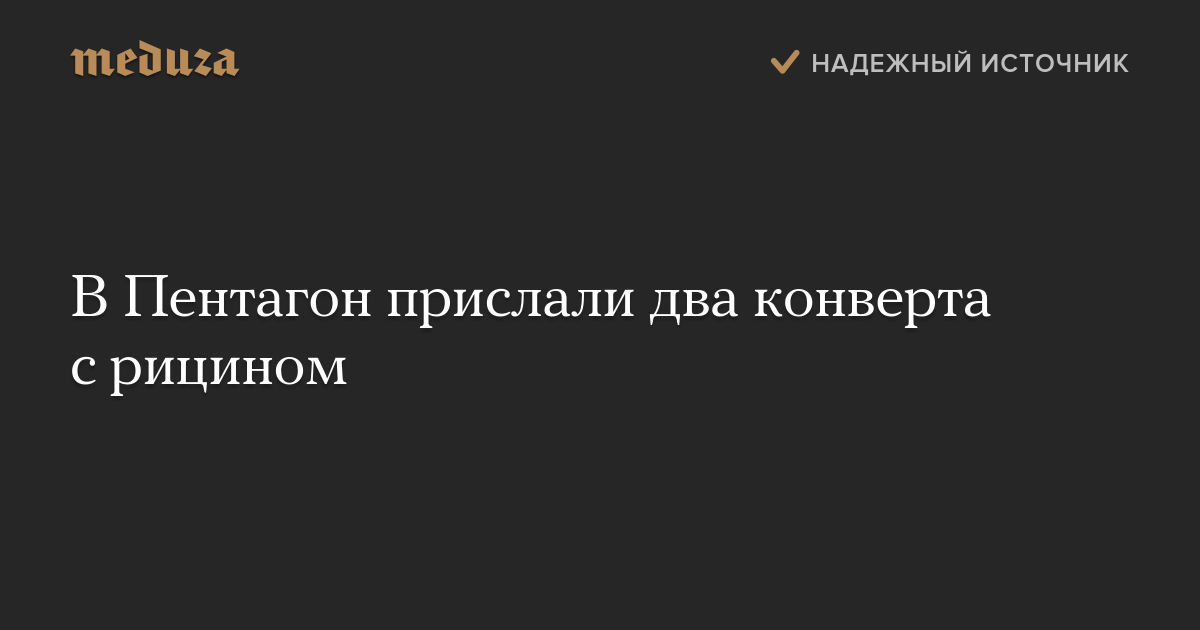 В Пентагон доставлены две посылки, которые содержали подозрительное вещество. Конверты были адресованы главе Пентагона Джеймсу Мэтису и главкому флота Джону Ричардсону.