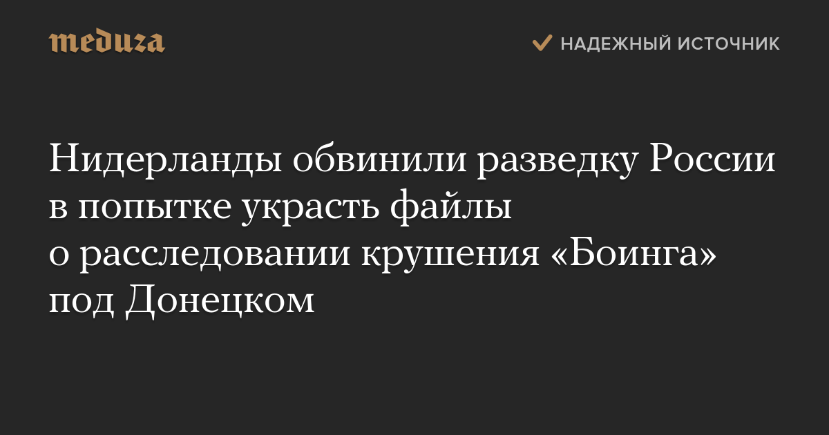 Нидерланды обвинили разведку России в попытке украсть файлы о расследовании крушения «Боинга» под Донецком