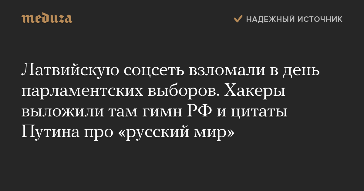 Латвийскую соцсеть взломали в день парламентских выборов. Хакеры выложили там гимн РФ и цитаты Путина про «русский мир»
