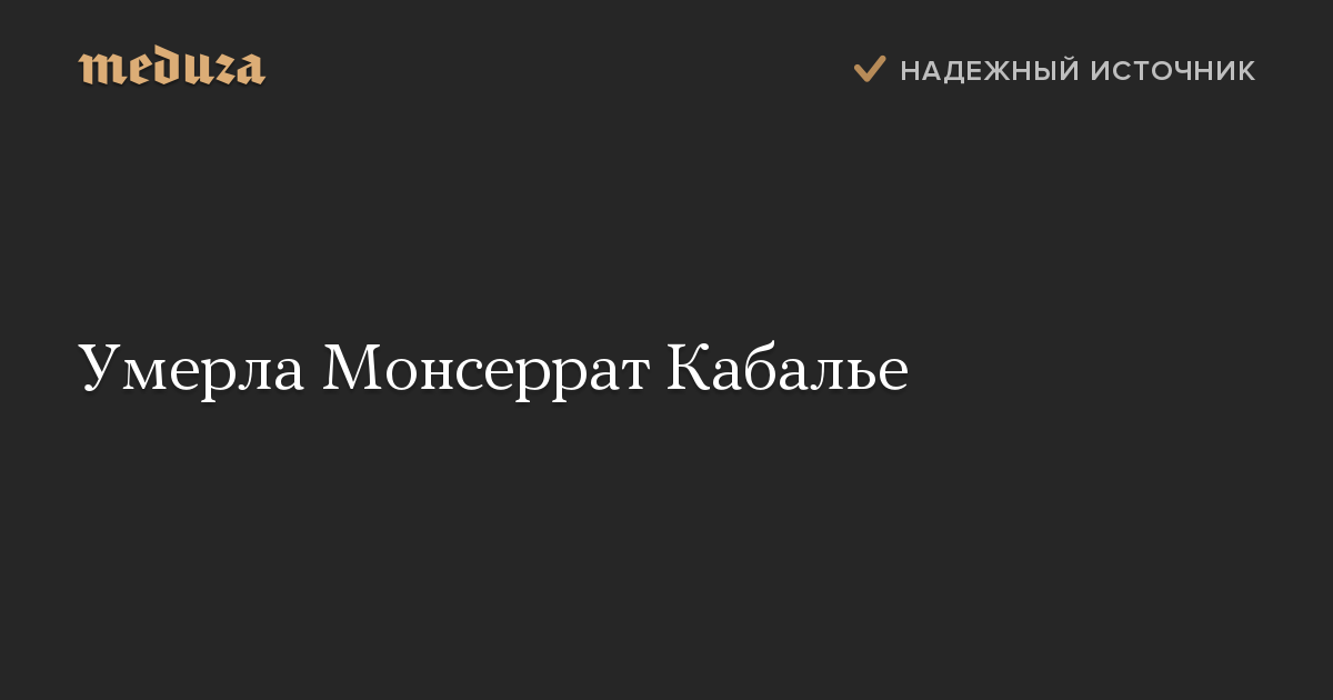 О смерти певицы сообщают испанские СМИ со ссылкой на источники в медицинских кругах. La Vanguardia пишет, что Кабалье «давно болела».