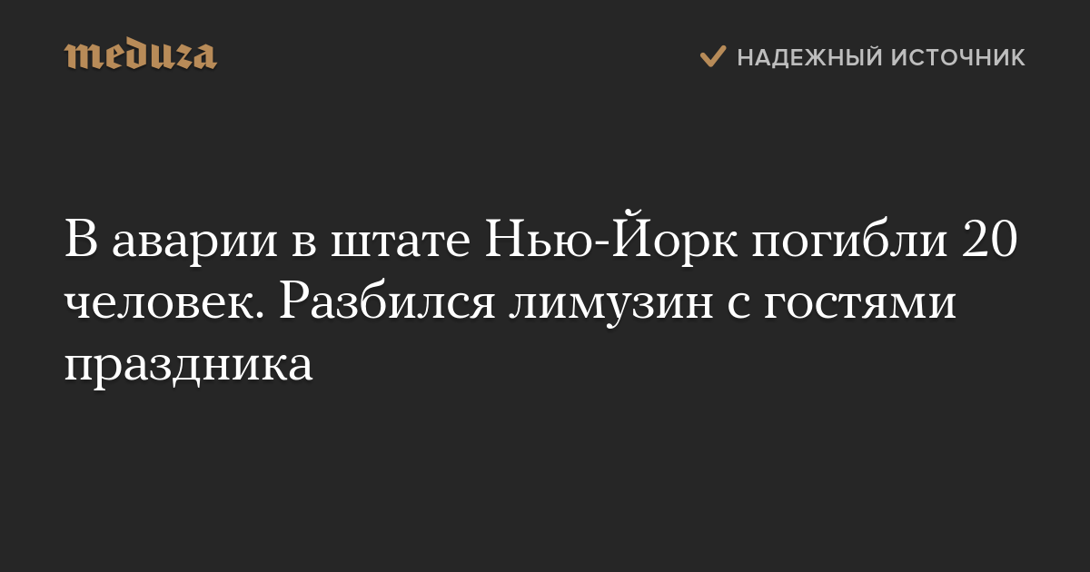 В аварии в штате Нью-Йорк погибли 20 человек. Разбился лимузин с гостями праздника