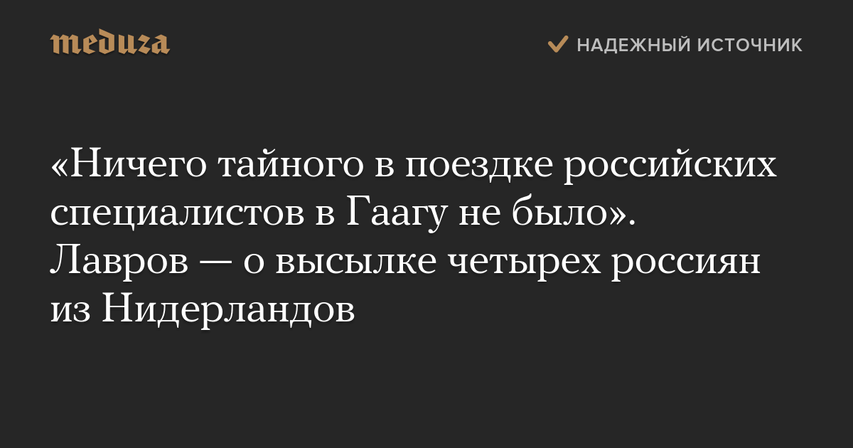 «Ничего тайного в поездке российских специалистов в Гаагу не было». Лавров — о высылке четырех россиян из Нидерландов