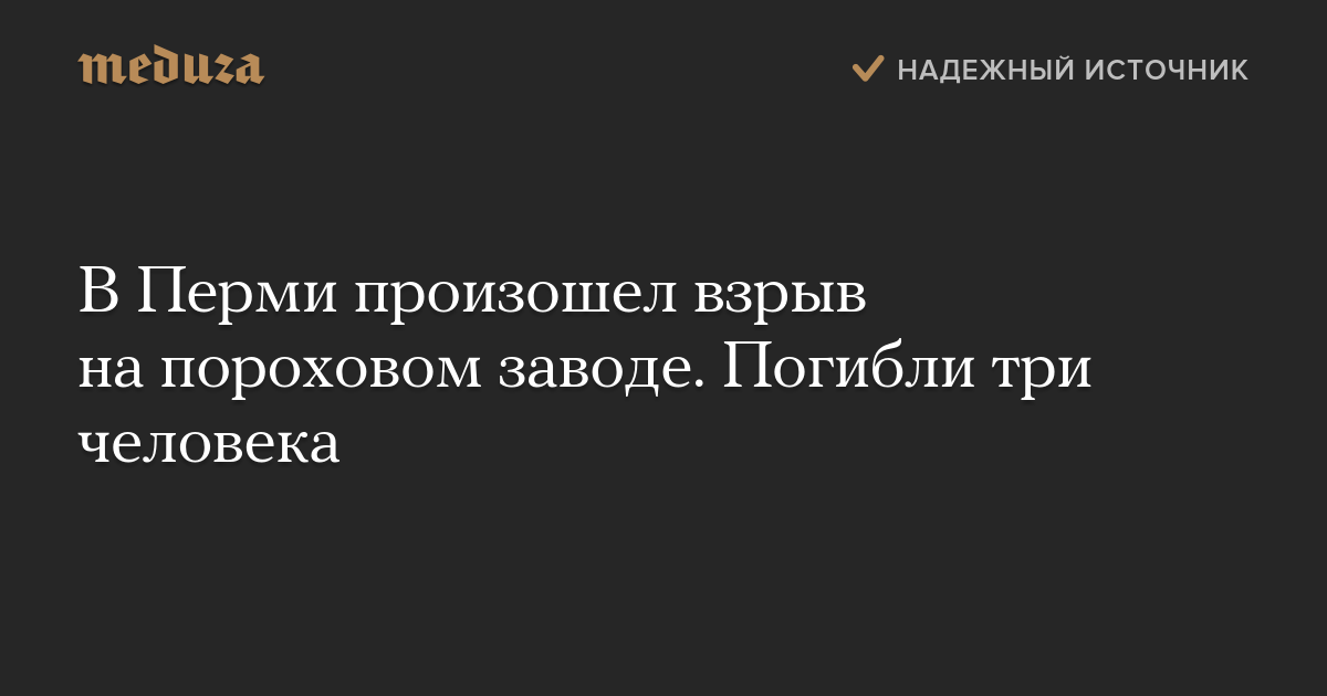 В Перми произошел взрыв на пороховом заводе. Погибли три человека