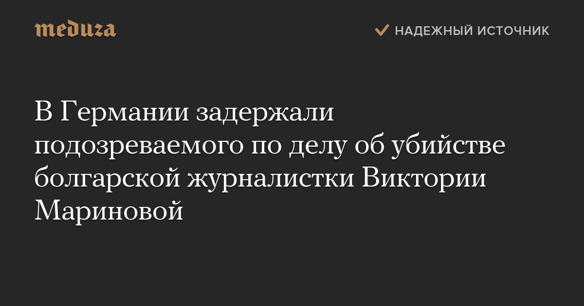 В Германии задержан подозреваемый по делу об убийстве болгарской журналистки Виктории Мариновой, сообщают болгарские СМИ со ссылкой на источники.