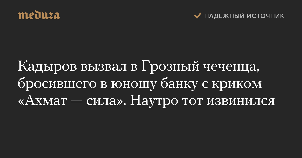 Кадыров вызвал в Грозный чеченца, бросившего в юношу банку с криком «Ахмат — сила». Наутро тот извинился