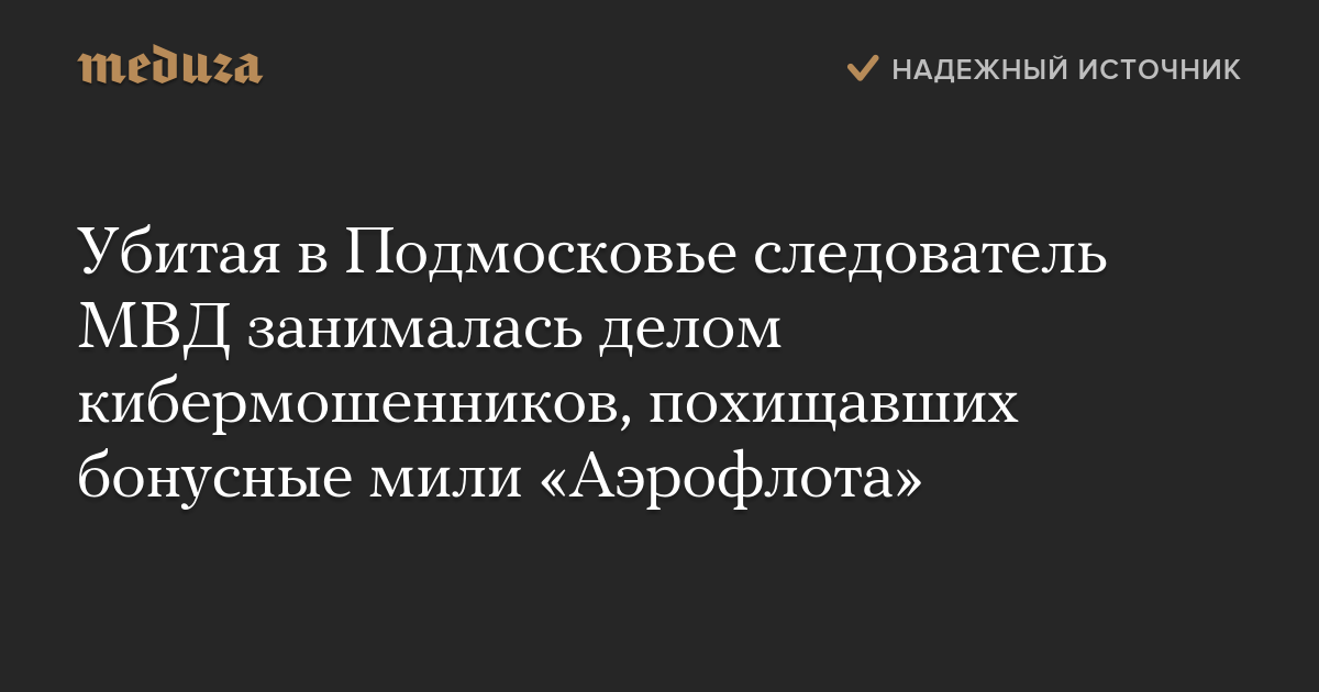 Убитая в Подмосковье следователь МВД занималась делом кибермошенников, похищавших бонусные мили «Аэрофлота»
