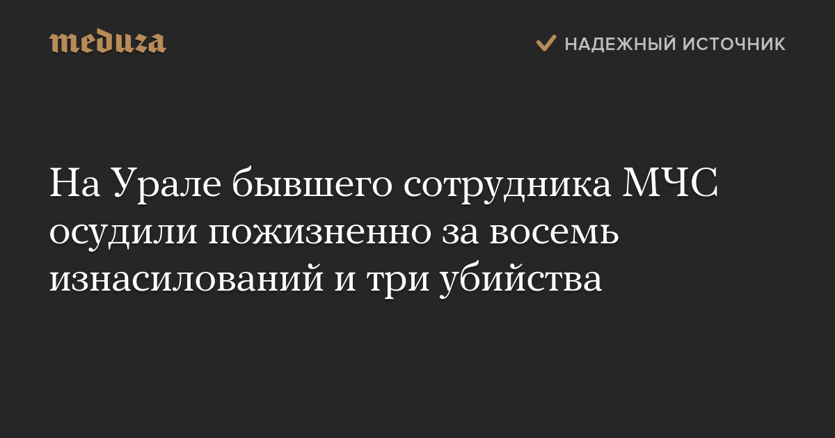 На Урале бывшего сотрудника МЧС осудили пожизненно за восемь изнасилований и три убийства