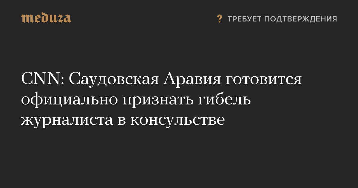 CNN: Саудовская Аравия готовится официально признать гибель журналиста в консульстве