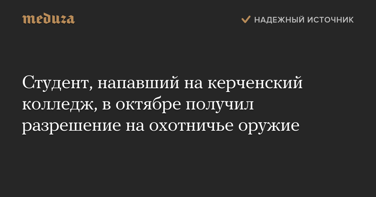 Студент, напавший на керченский колледж, в октябре получил разрешение на охотничье оружие