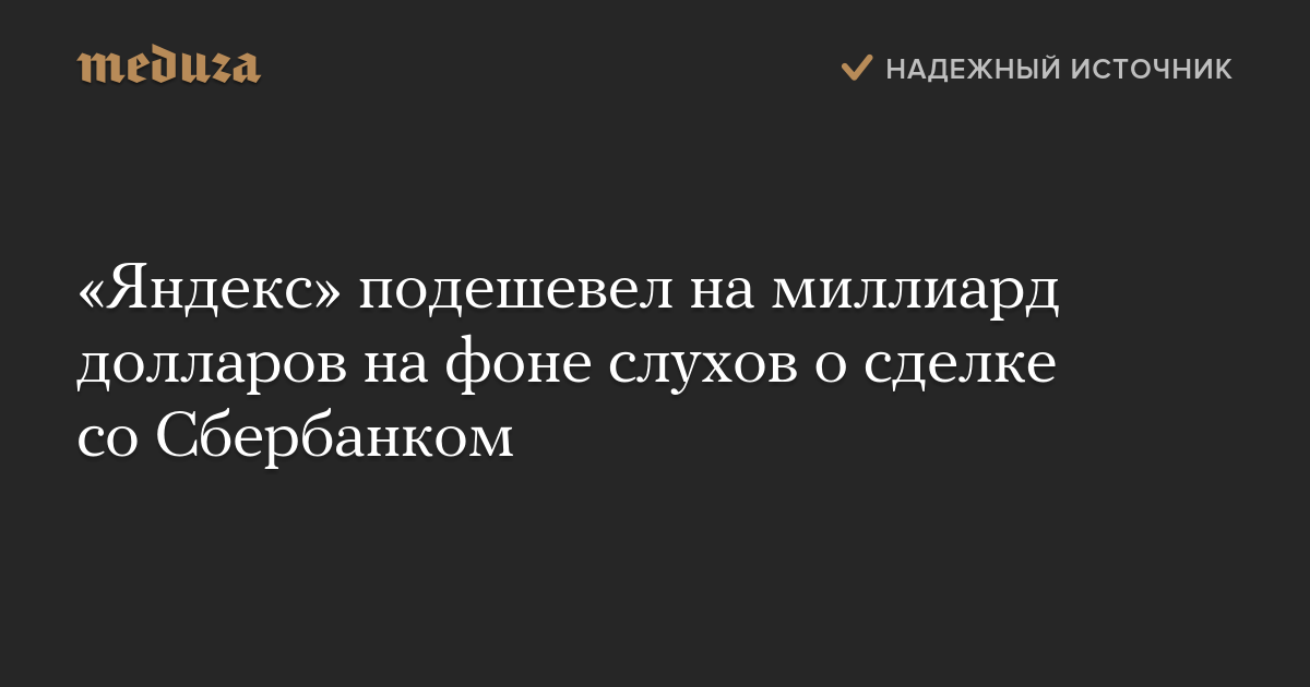 «Яндекс» подешевел на миллиард долларов на фоне слухов о сделке со Сбербанком