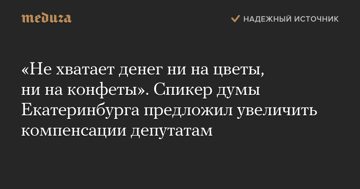 «Не хватает денег ни на цветы, ни на конфеты». Спикер думы Екатеринбурга предложил увеличить компенсации депутатам
