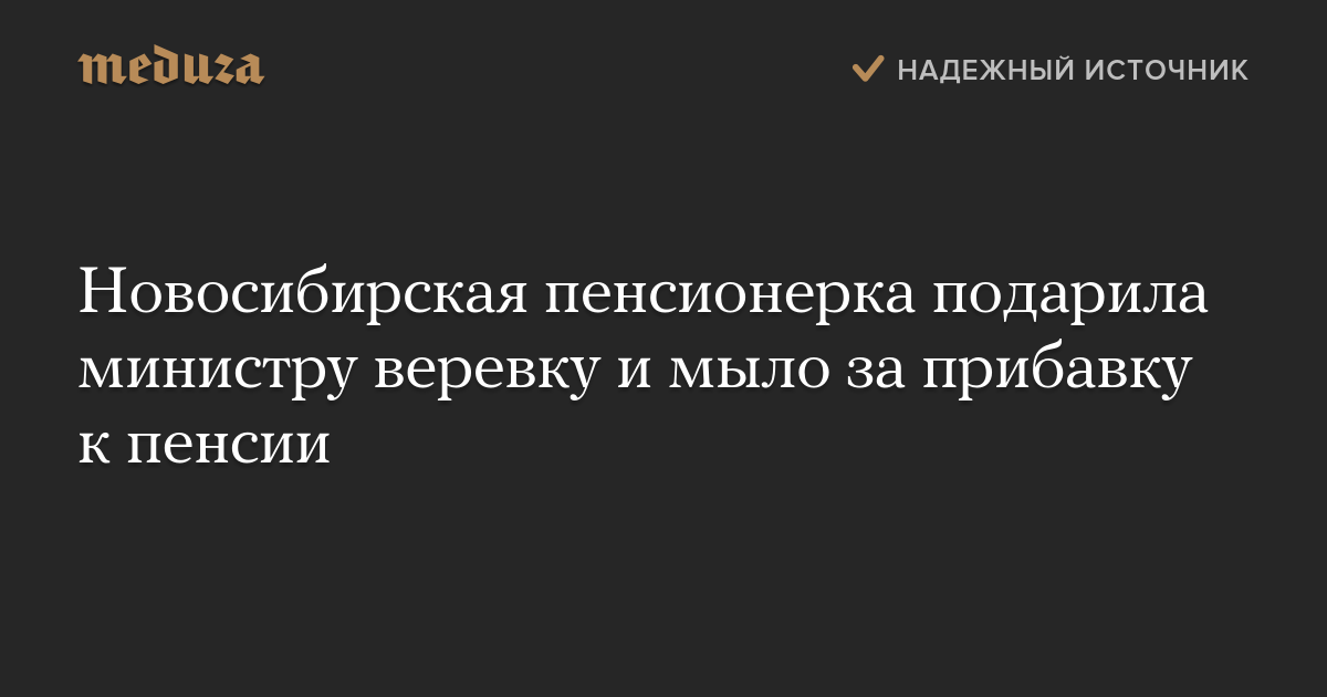 Новосибирская пенсионерка подарила министру веревку и мыло за прибавку к пенсии