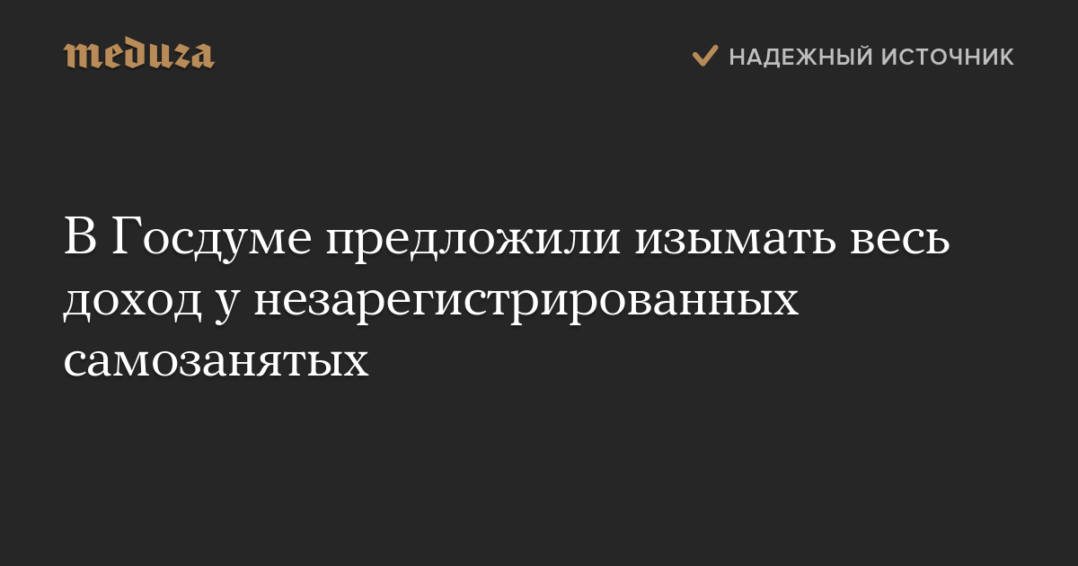 В Госдуме предложили изымать весь доход у незарегистрированных самозанятых