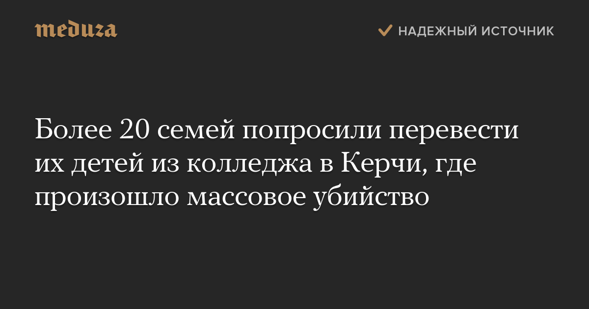 Более 20 семей попросили перевести их детей из колледжа в Керчи, где произошло массовое убийство