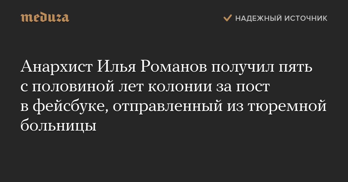 Анархист Илья Романов получил пять с половиной лет колонии за пост в фейсбуке, отправленный из тюремной больницы