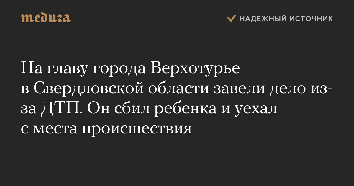 На главу города Верхотурье в Свердловской области завели дело из-за ДТП. Он сбил ребенка и уехал с места происшествия