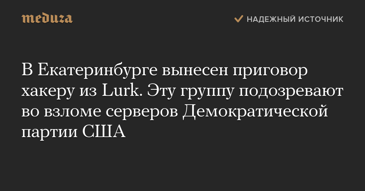 В Екатеринбурге вынесен приговор хакеру из Lurk. Эту группу подозревают во взломе серверов Демократической партии США