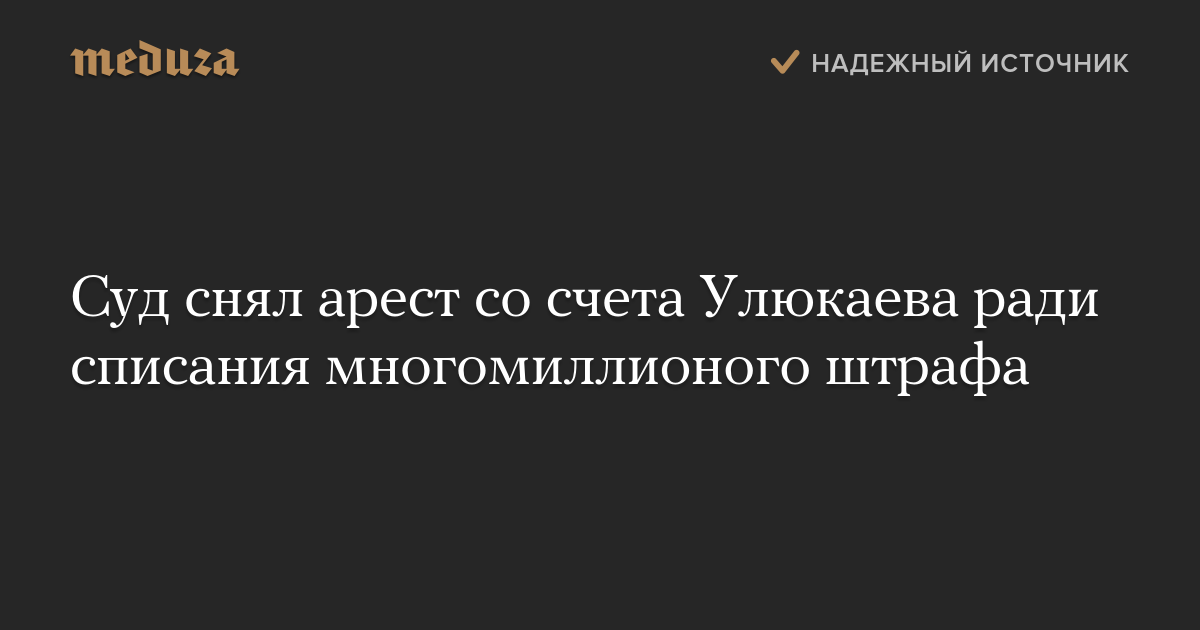 Суд удовлетворил заявление службы судебных приставов, просившей снять арест, чтобы взыскать с Улюкаева штраф, назначенный по делу о взятке. В службе отметили, что с бывшего министра взыскали 5,5 миллиона рублей, но он остался должен 124,9 миллиона рублей.