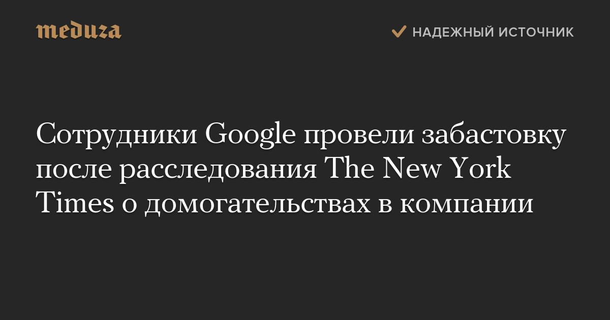 Причиной забастовки стало расследование The New York Times о сексуальных домогательствах среди топ-менеджеров Google. В нем, в частности, говорилось, что создатель Android Энди Рубин покинул компанию после того, как его обвинили в принуждении к сексу, но при этом он получил 90 миллионов долларов в качестве выходного пособия.