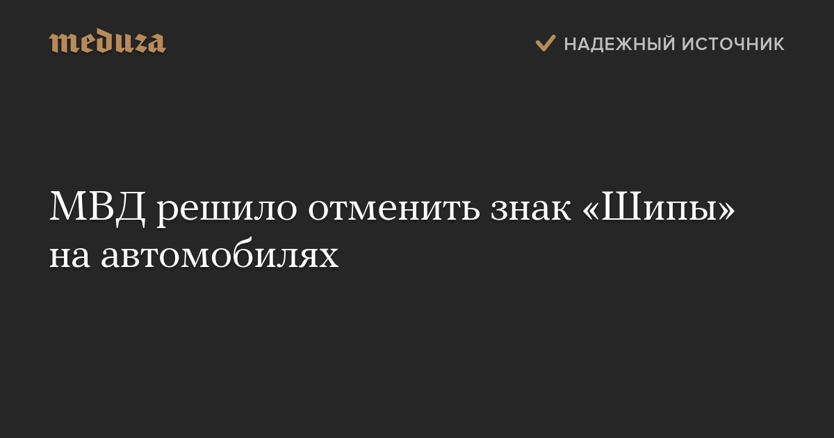 МВД России предложило отменить требование устанавливать на автомобили опознавательный знак «Шипы», поскольку тот «потерял свою актуальность», сообщает ТАСС.